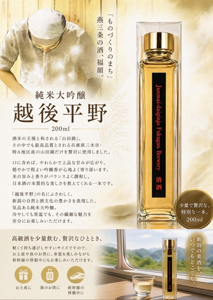 オンラインショップ:純米大吟醸 越後平野 (200ml) – 福顔酒造オンラインショップ
